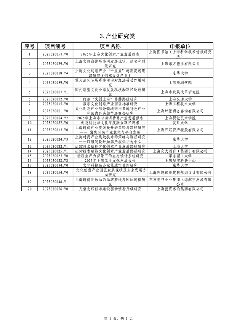 為推進本市文化創意產業發展,根據《上海市促進文化創意產業發展專項資金管理辦法》和《2025年度上海市促進文化創意產業發展專項資金項目申報指南》,我辦會同相關部門開展了2025年上海市促進文化創意產業發展專項資金項目評審工作?,F將2025年擬支持項目(第一批)予以公示,公示時間為2025年9月19日至9月25日。公示期間如有異議,請提供相關材料并簽署實名根據申報類目報送至市文創辦或市文旅局。